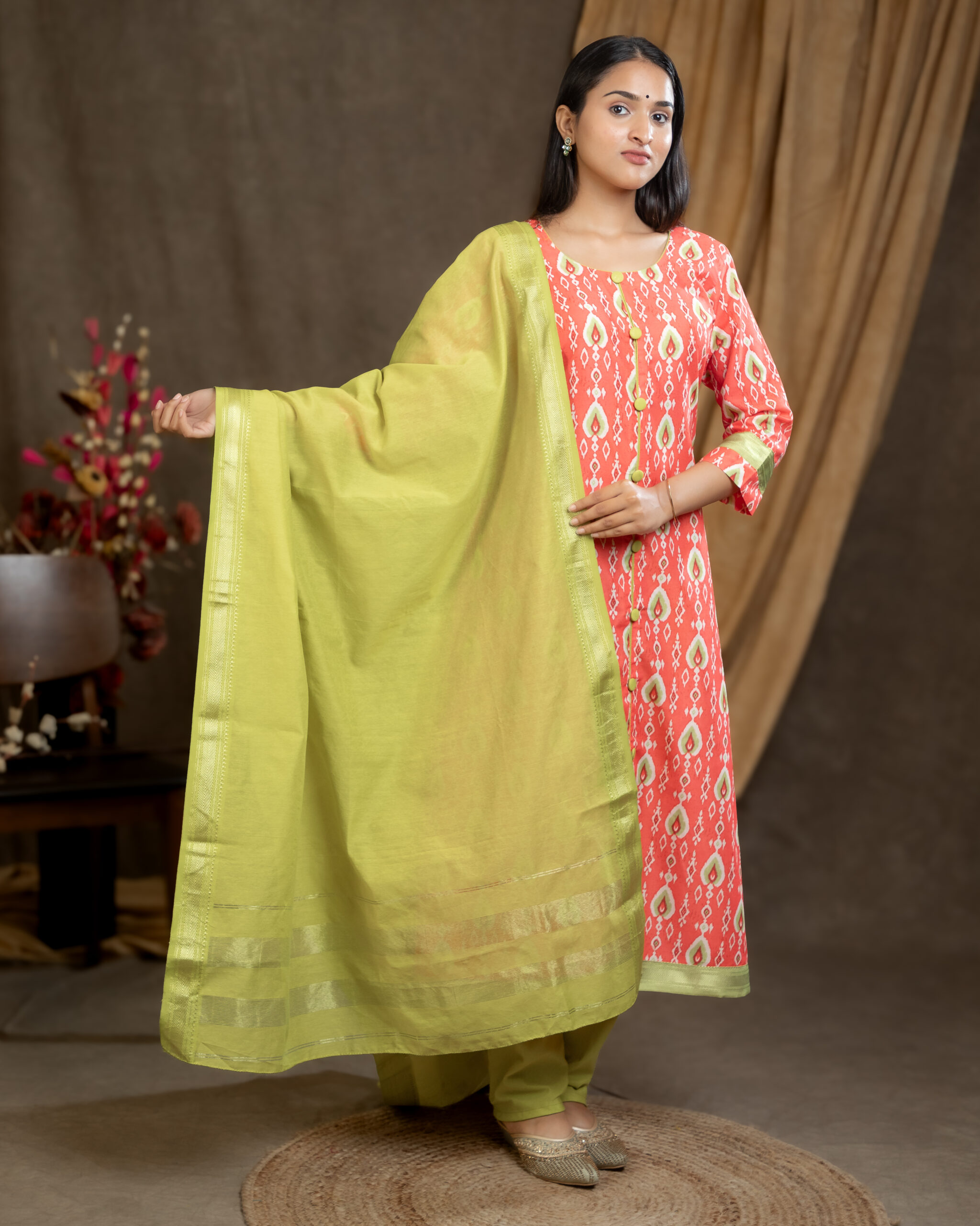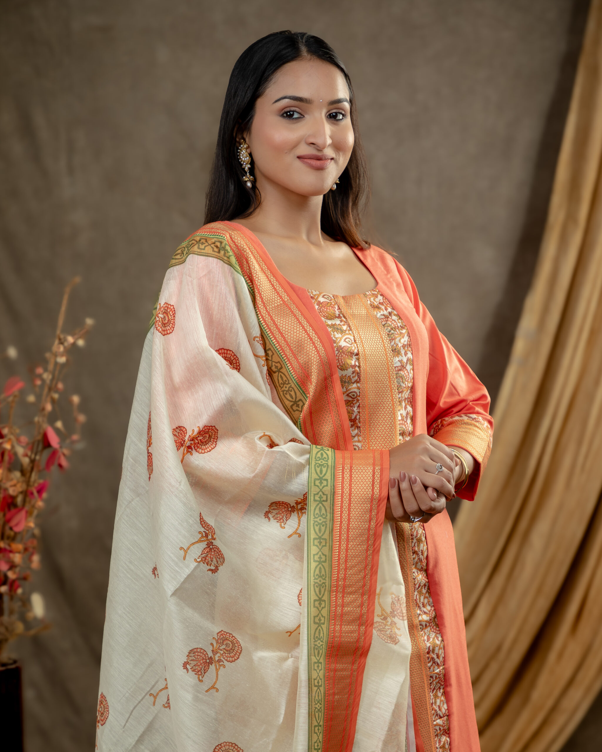 POONA COTTON RADHIKA PRINTED SUIT – Orange