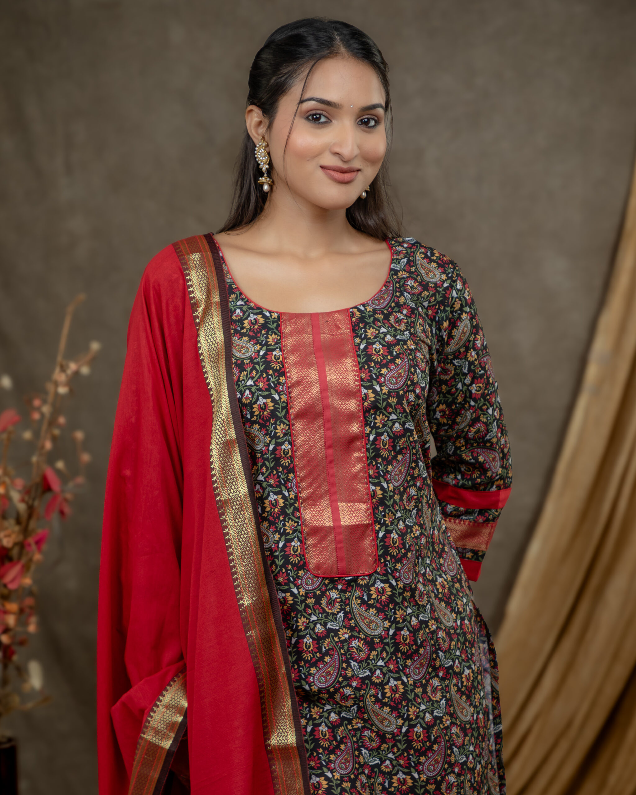 PAITHANI BORDER KALAMKARI SUITS – Red