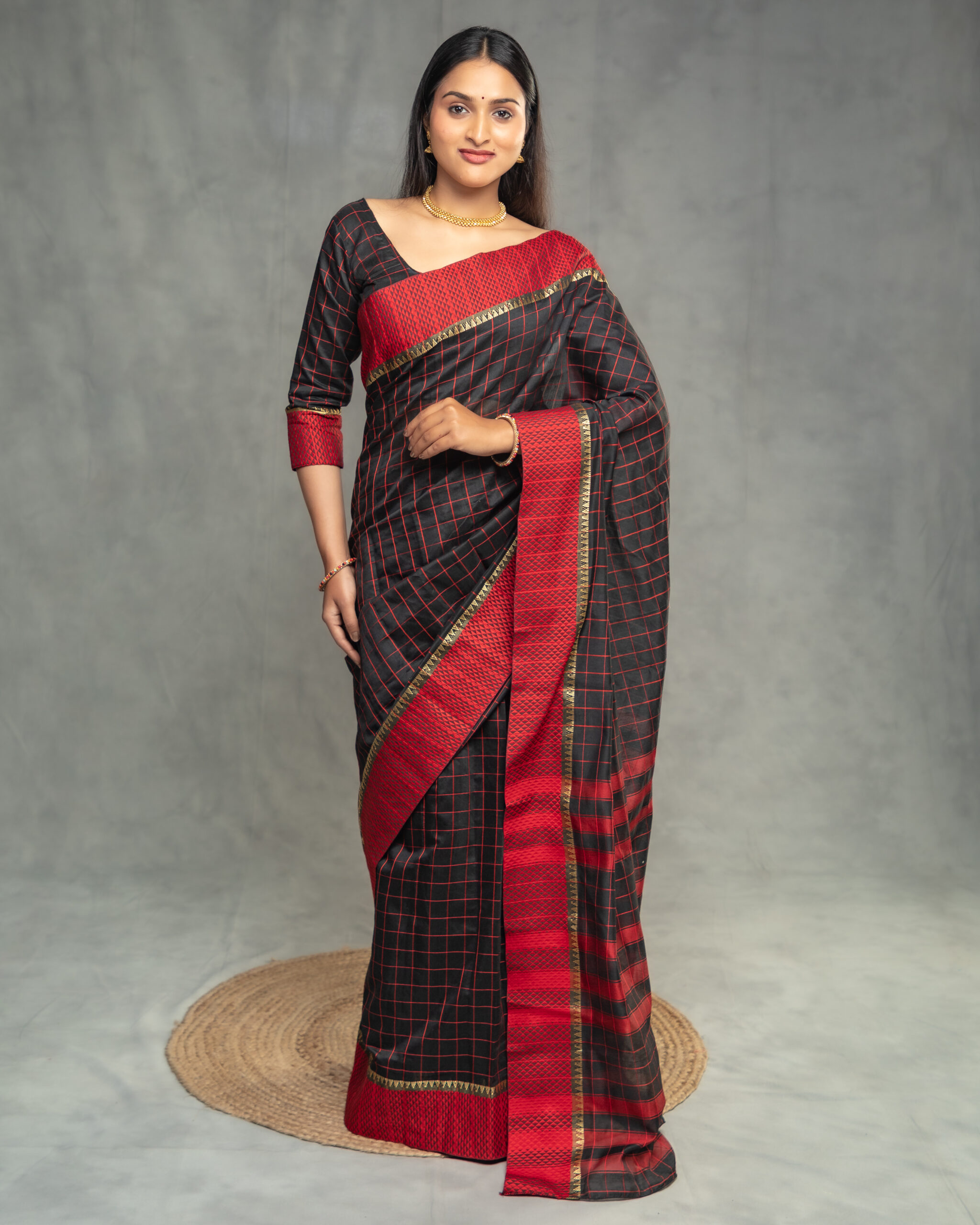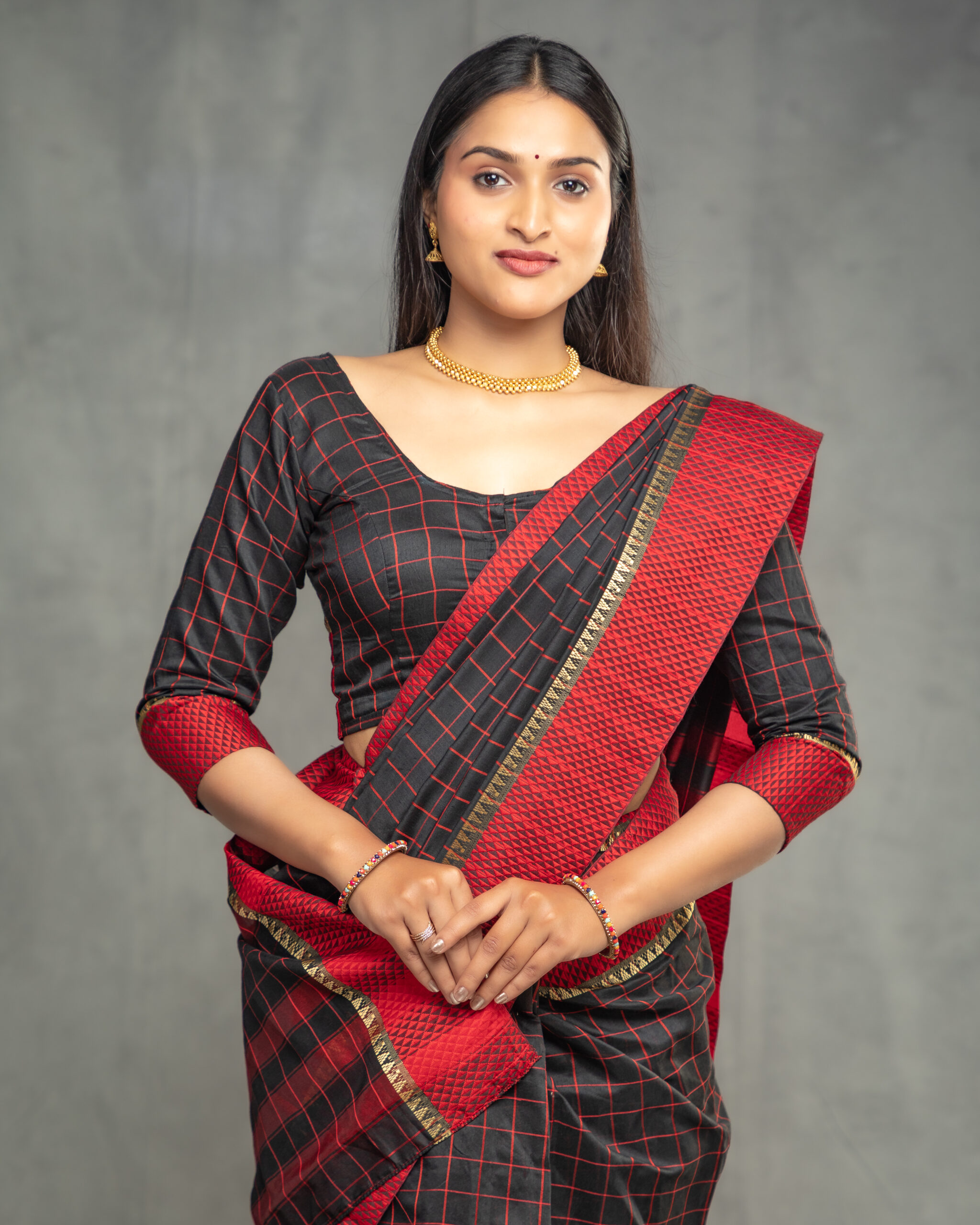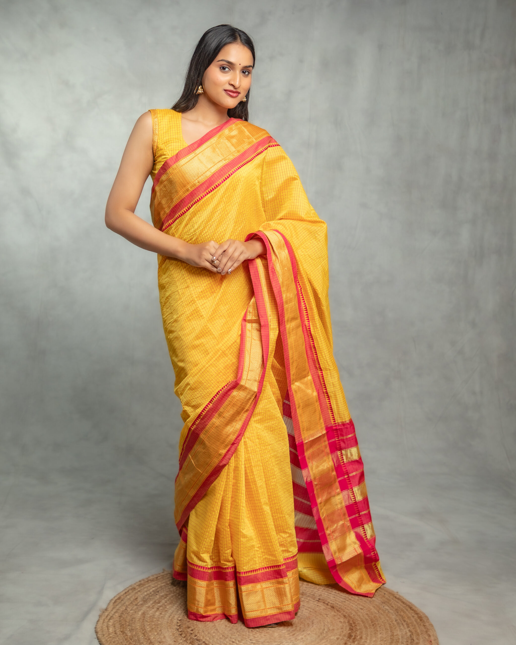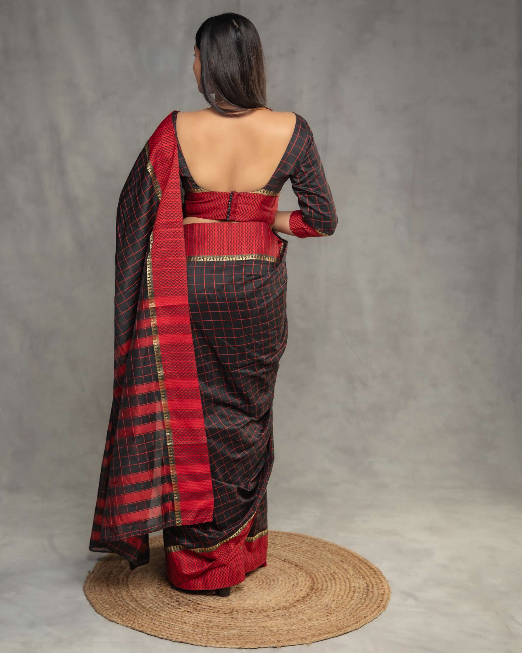 POONA DIAMOND BORDER COTTON CHECKS SAREE