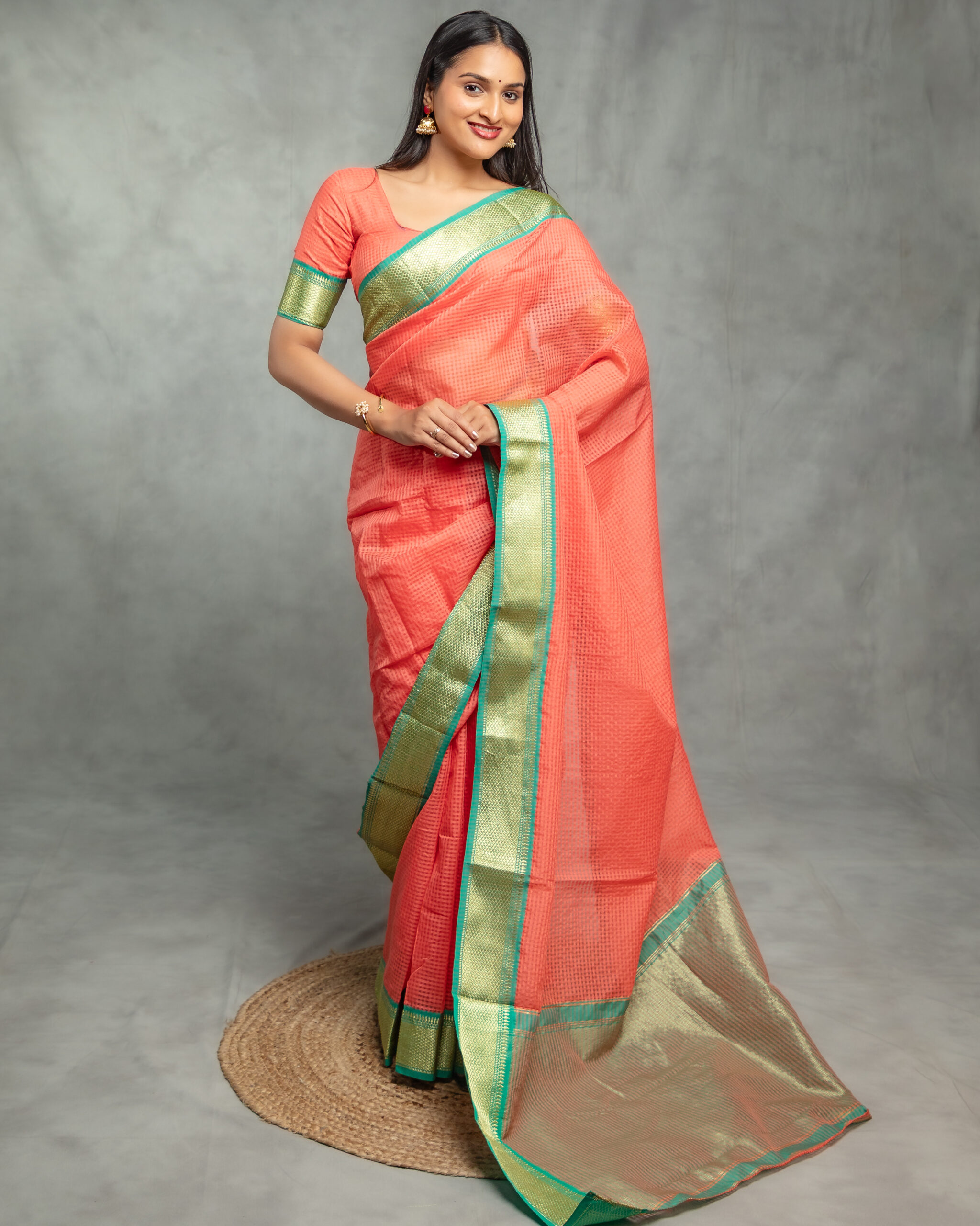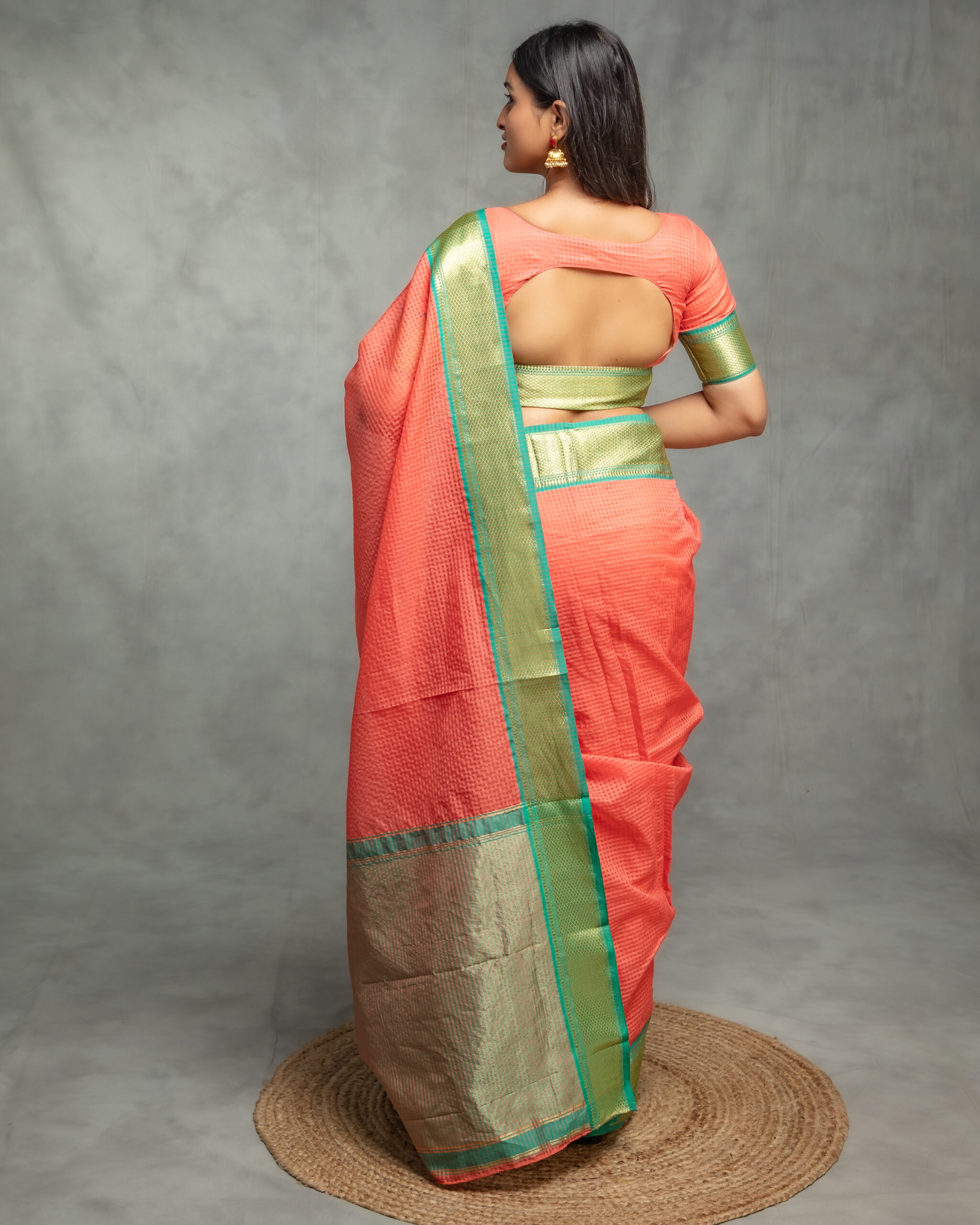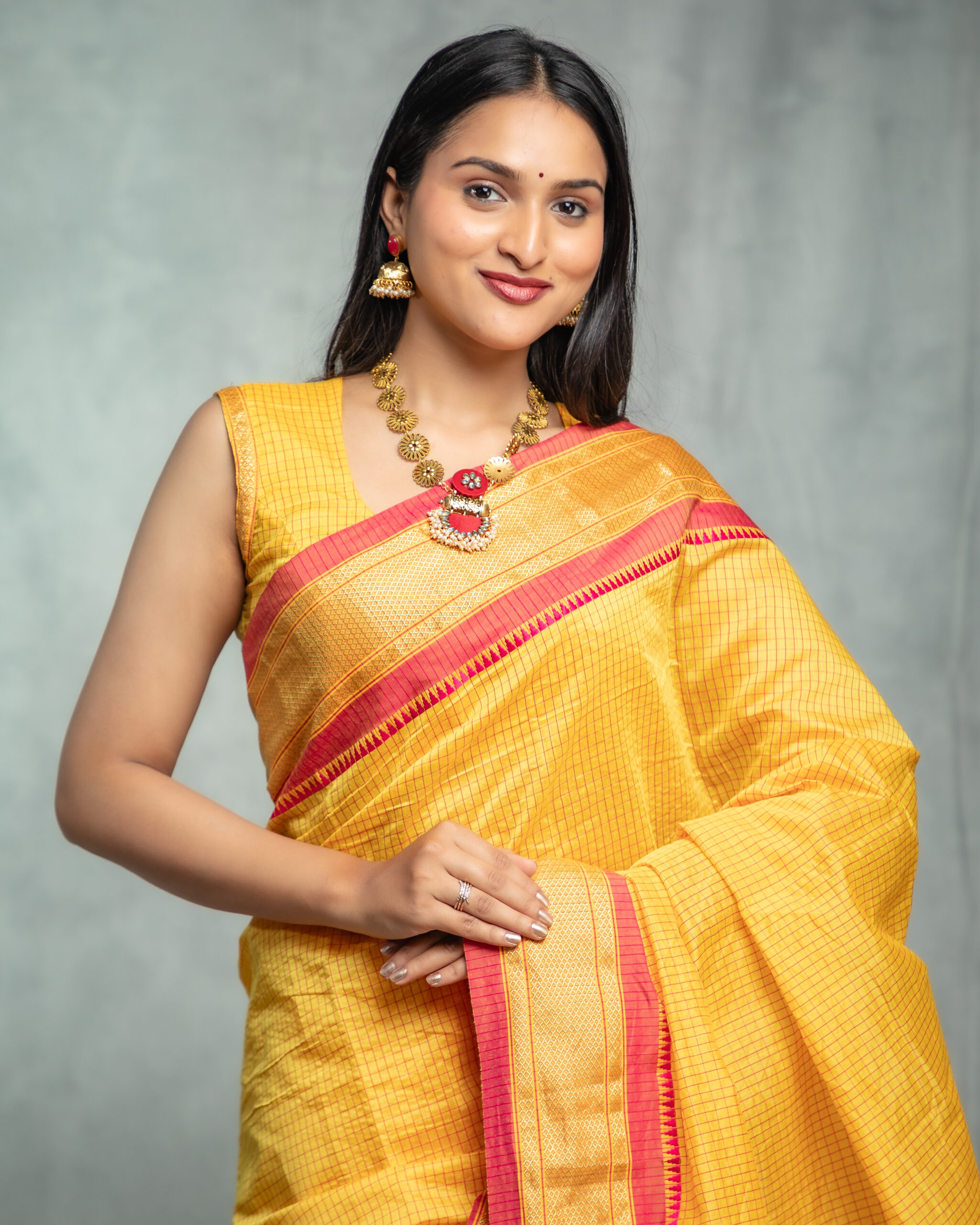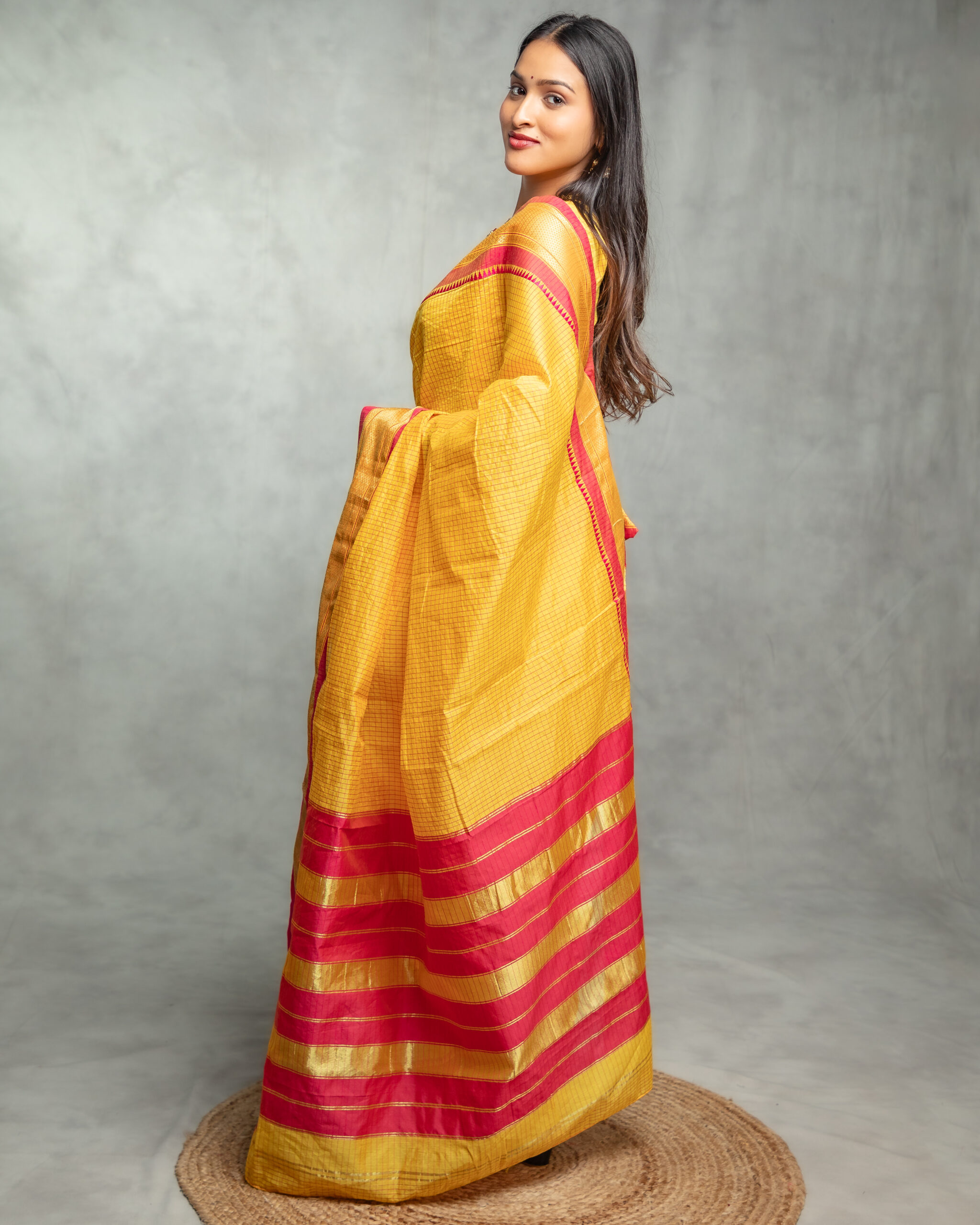 POONA DIAMOND BORDER COTTON CHECKS SAREE