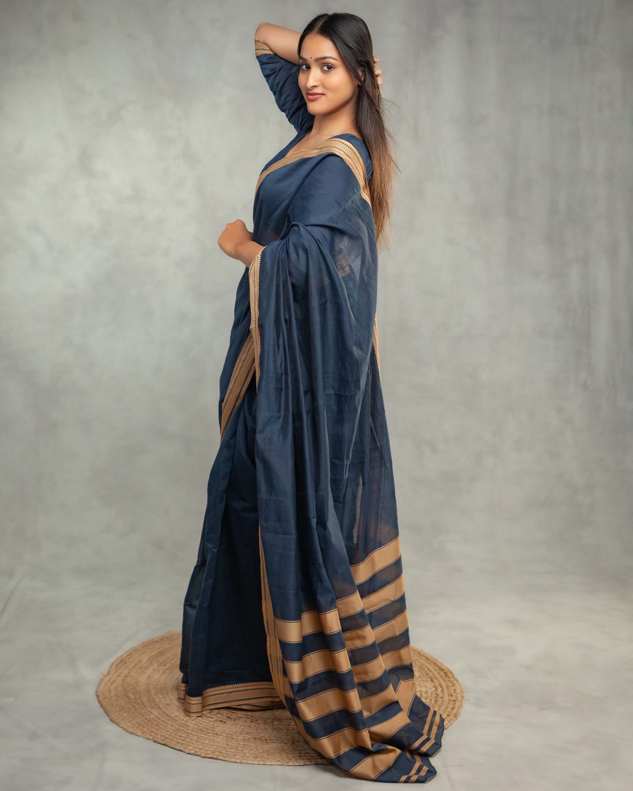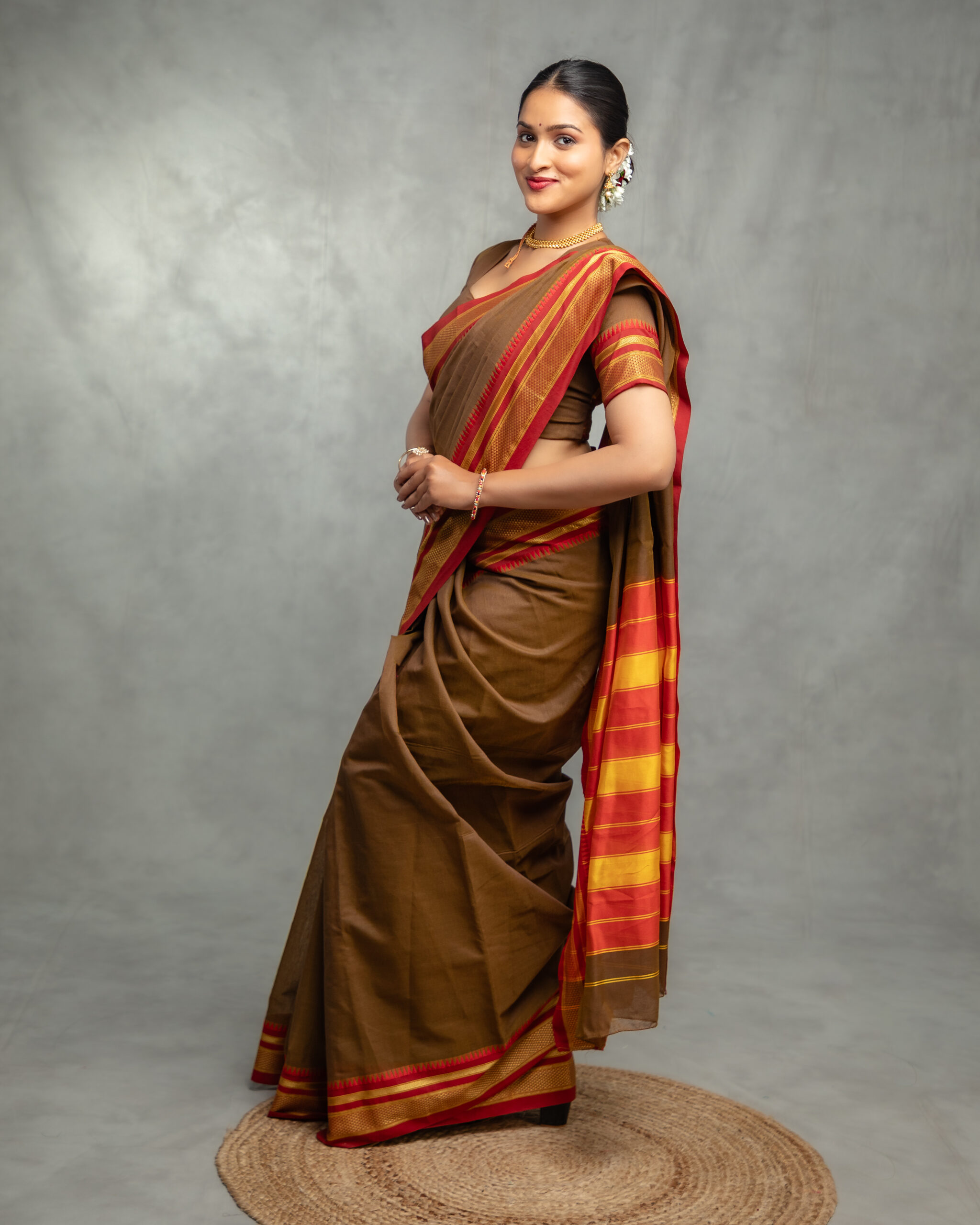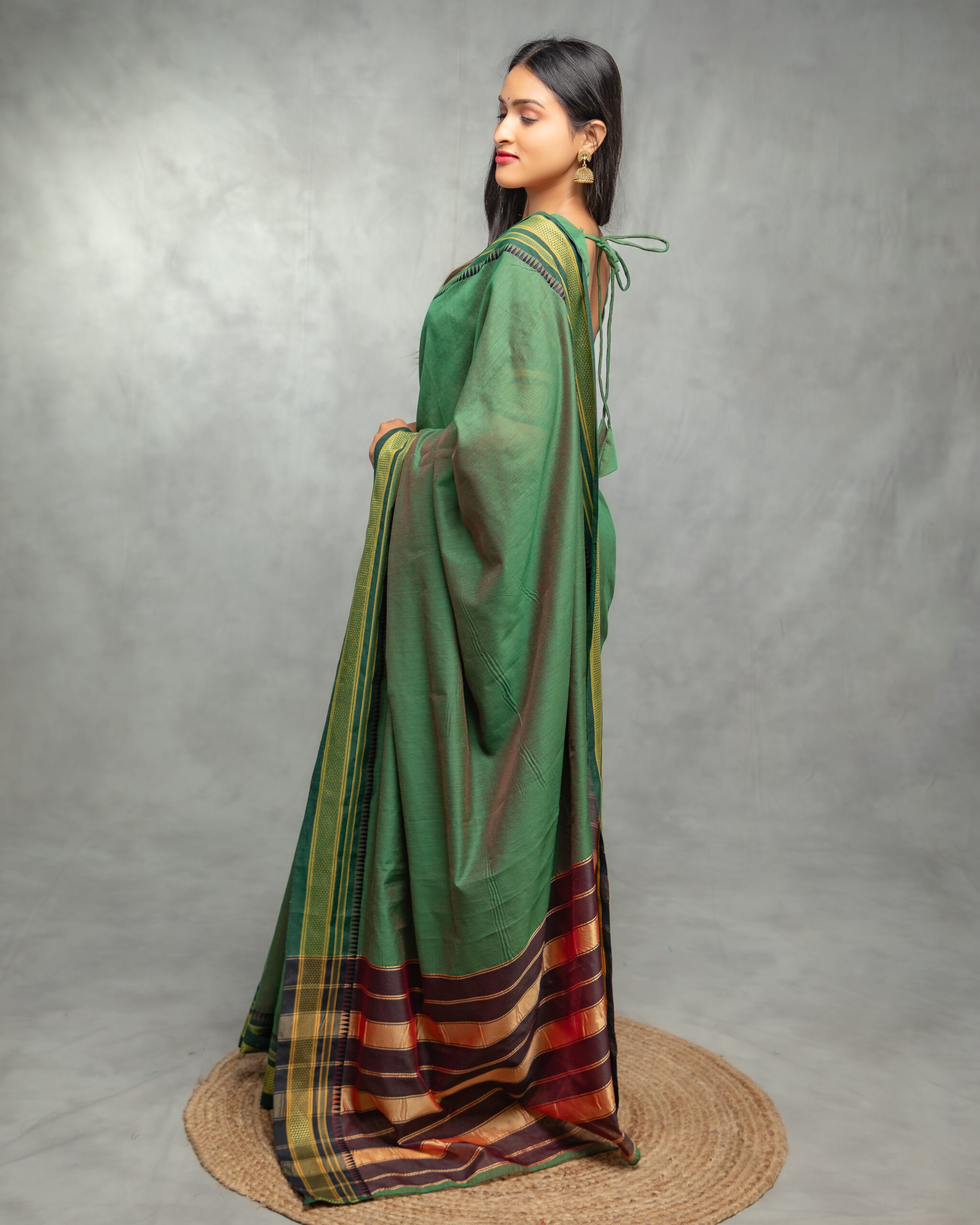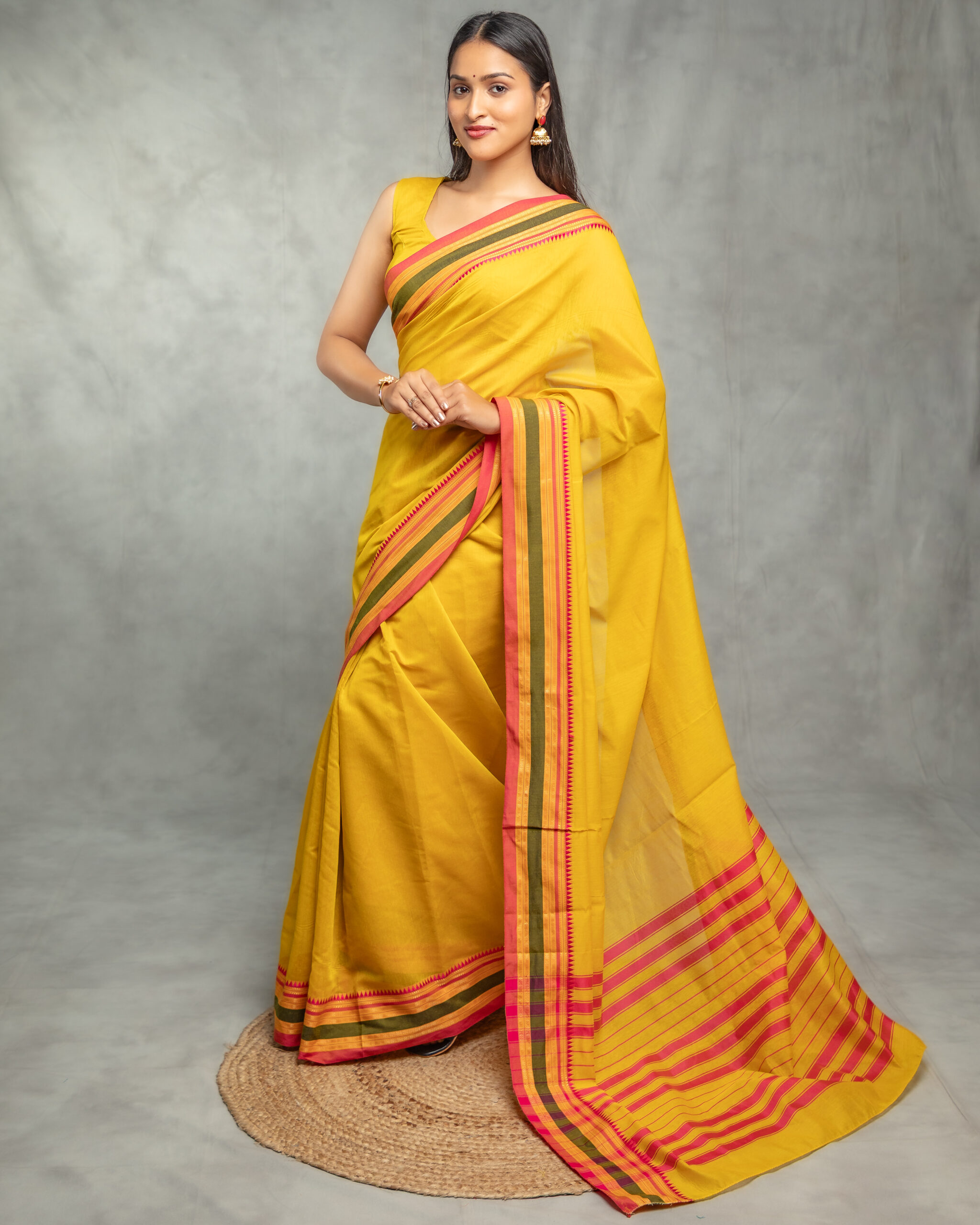 POONA NARAYAN PETH PLAIN BORDER COTTON SAREE