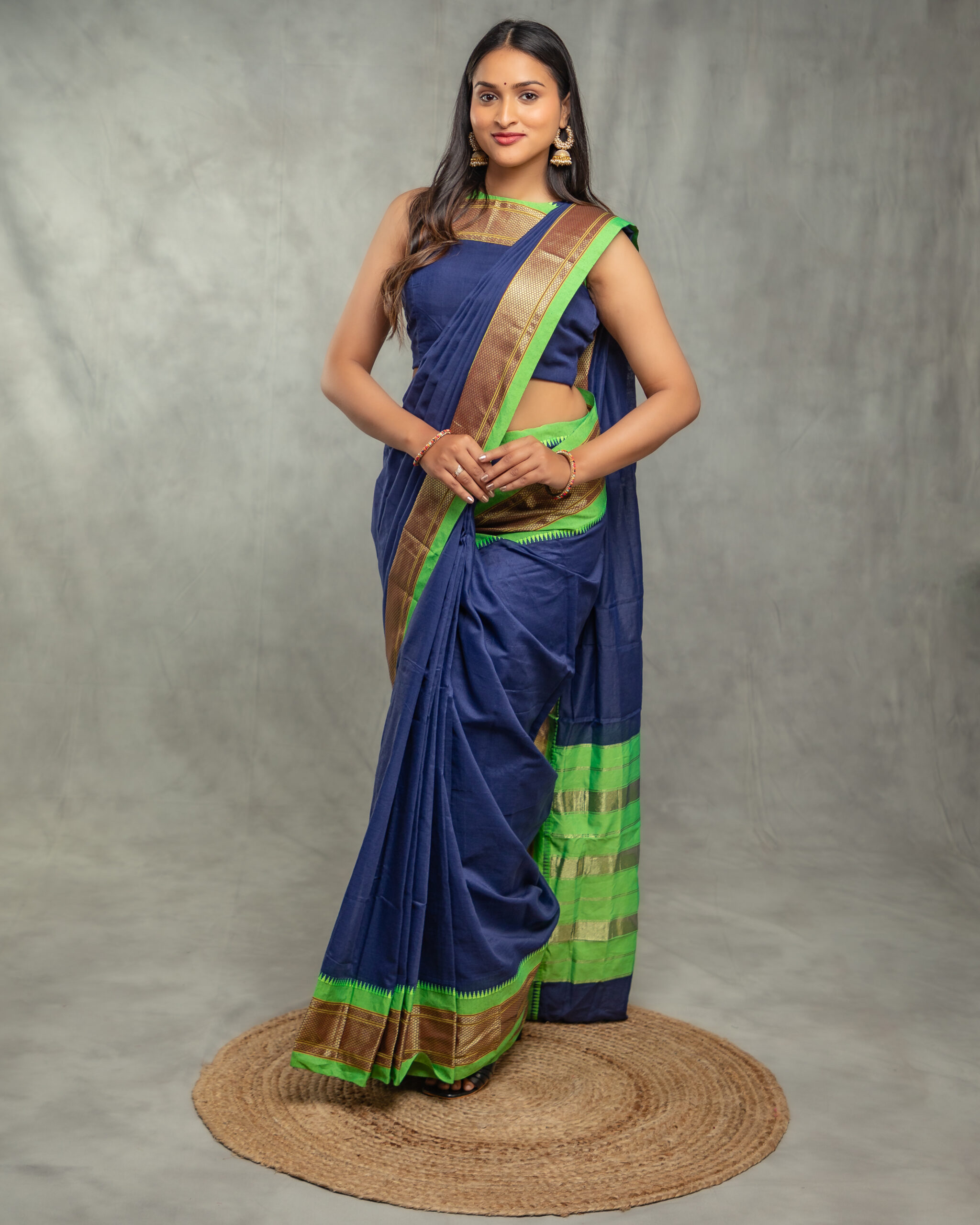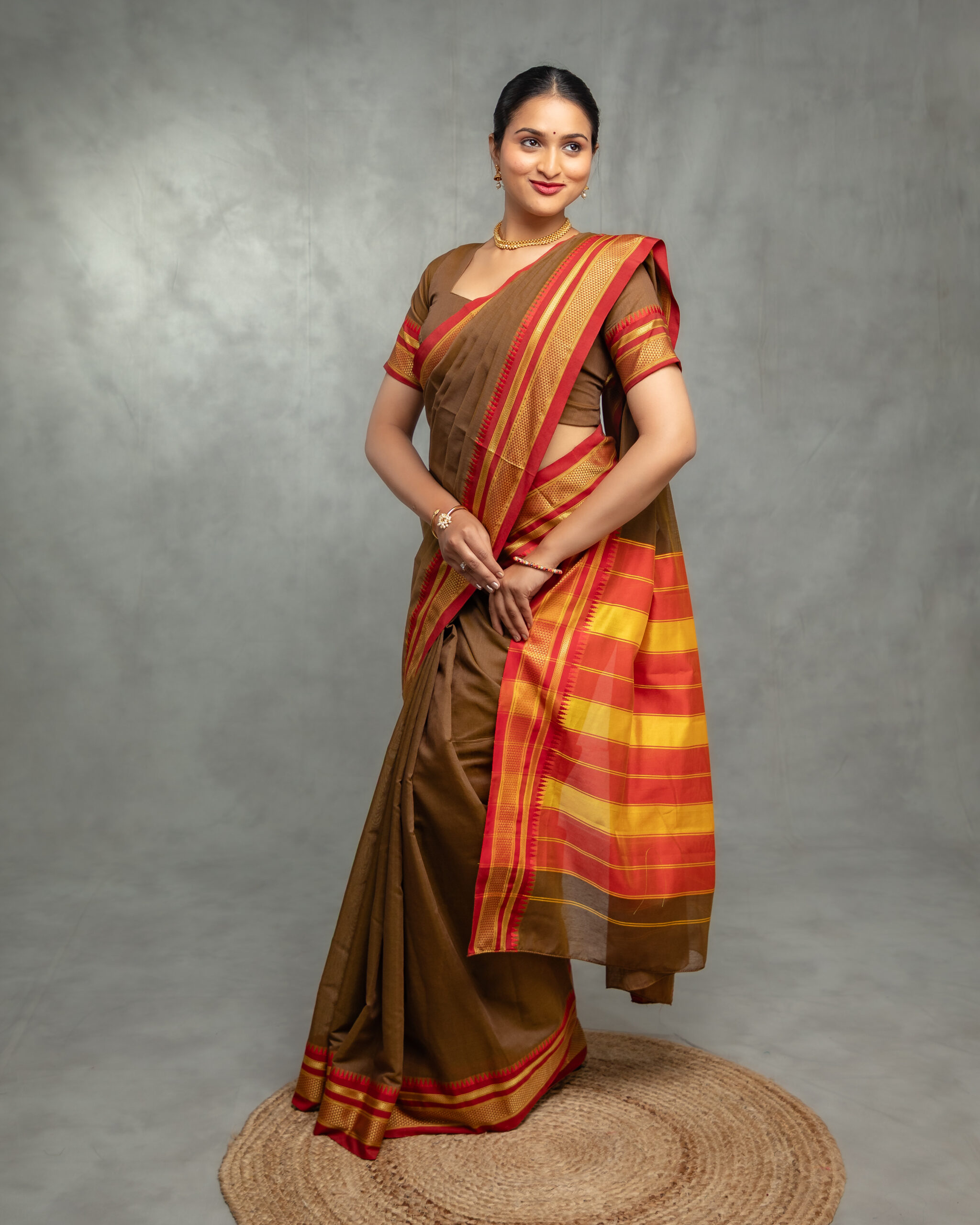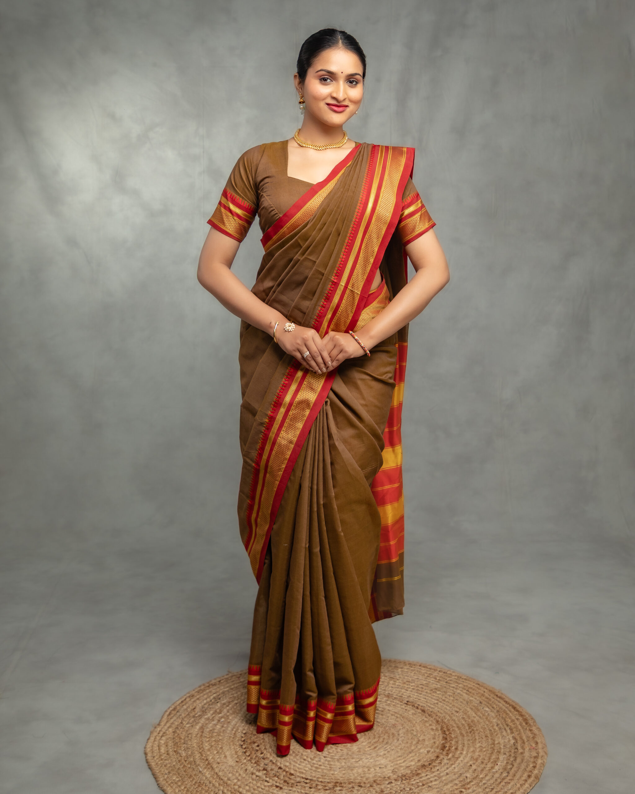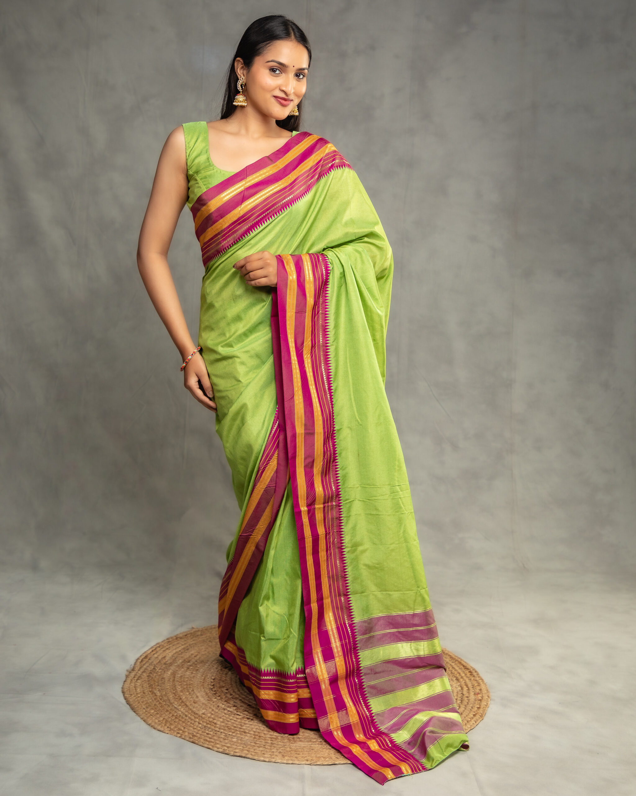 POONA NARAYAN PETH PLAIN BORDER COTTON SAREE
